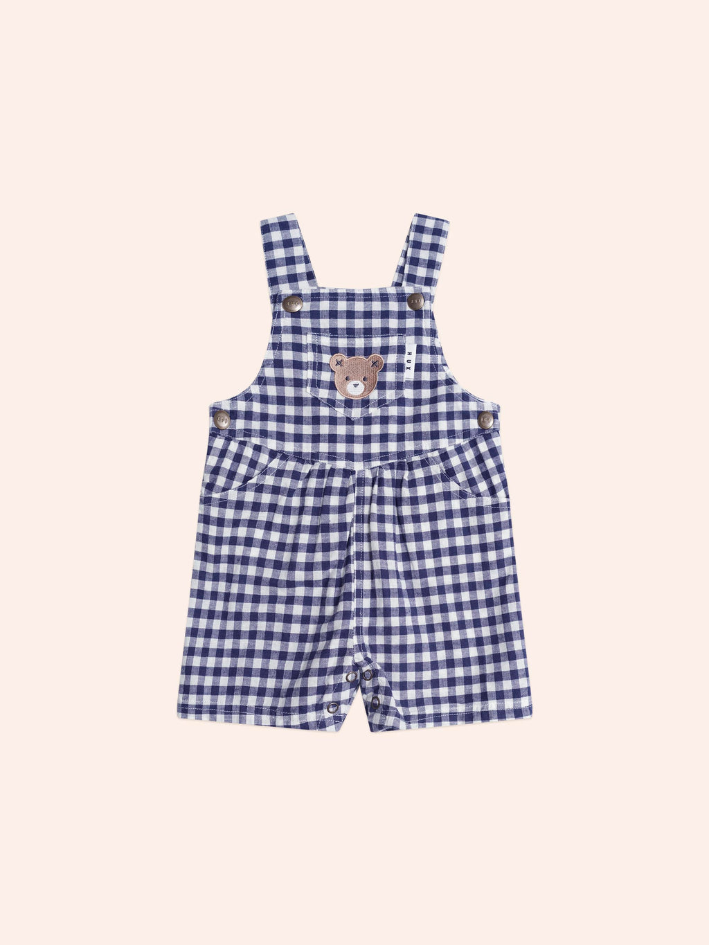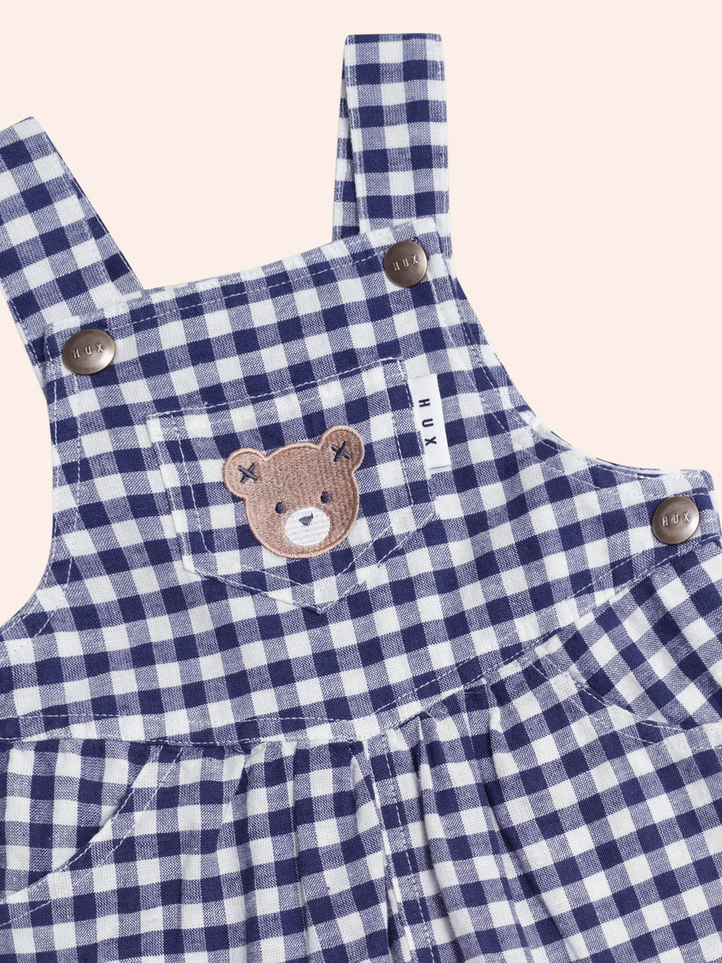 A classic pair of 90s overalls in a festive gingham check. Made from the softest cotton linen, they feature adjustable straps for comfy wear, chest and side pockets perfect for stashing candy canes in and a classic Huxbear embroidery. Baby sizes include stainless steel crotch snaps for easy dressing. Style them alone or over a tee.